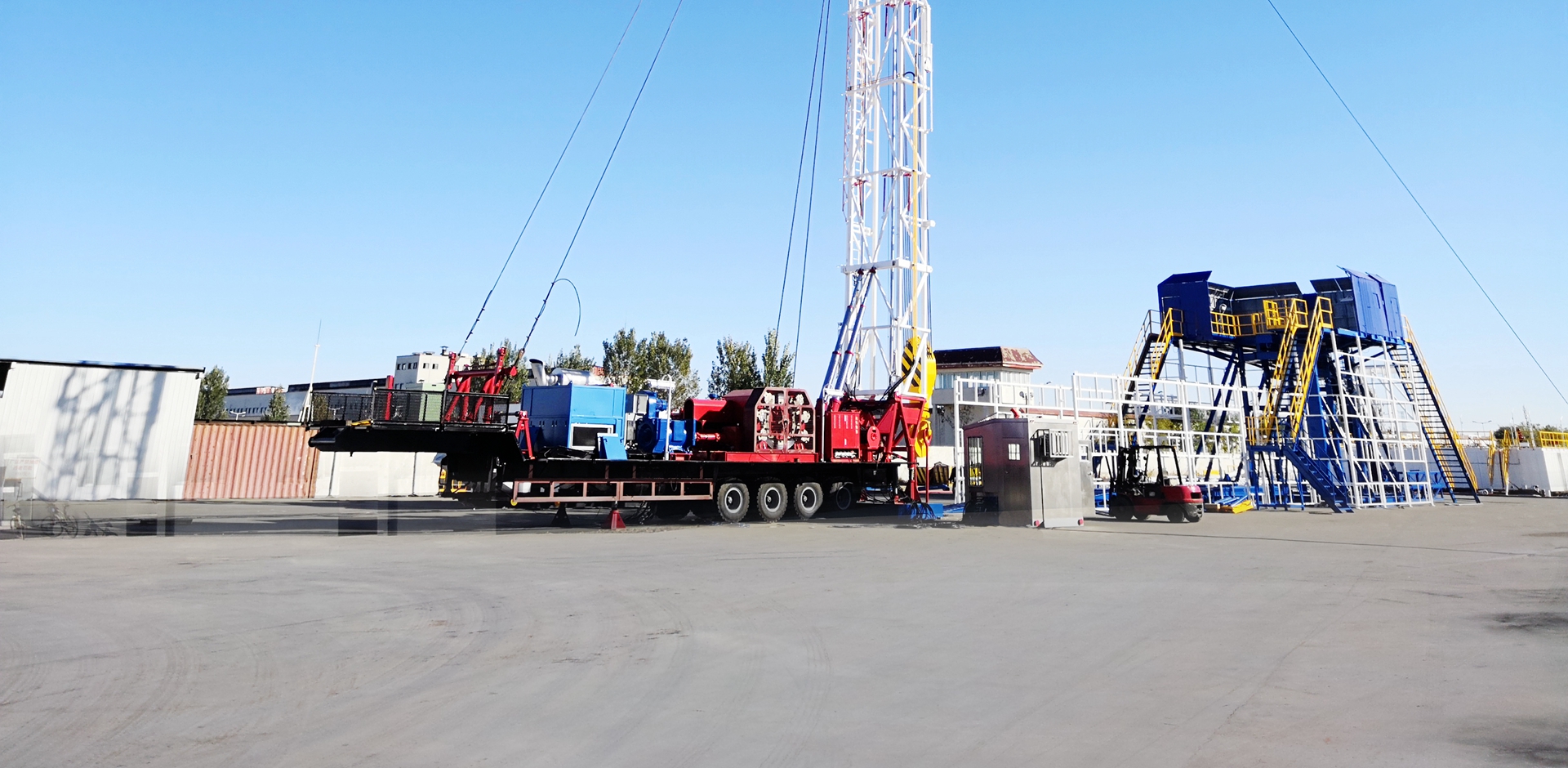 拖裝鉆機的動力、絞車、井架、游車系統及傳動機構全部裝載于半掛底盤上,移運時用牽引車拖掛移運至現場,該類產品對于提高鉆井作業搬遷效率具有很大的優勢,適應于中淺井鉆井作業。
